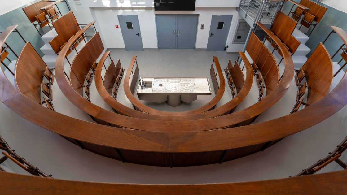 Caratterizzato da una configurazione semicircolare e attrezzato con tecnologie moderne per l'epoca, ospitava fino a novantacinque persone ed era progettato sia per l'insegnamento che per la ricerca anatomo-patologica, enfatizzando così un approccio scientifico e laboratoriale.