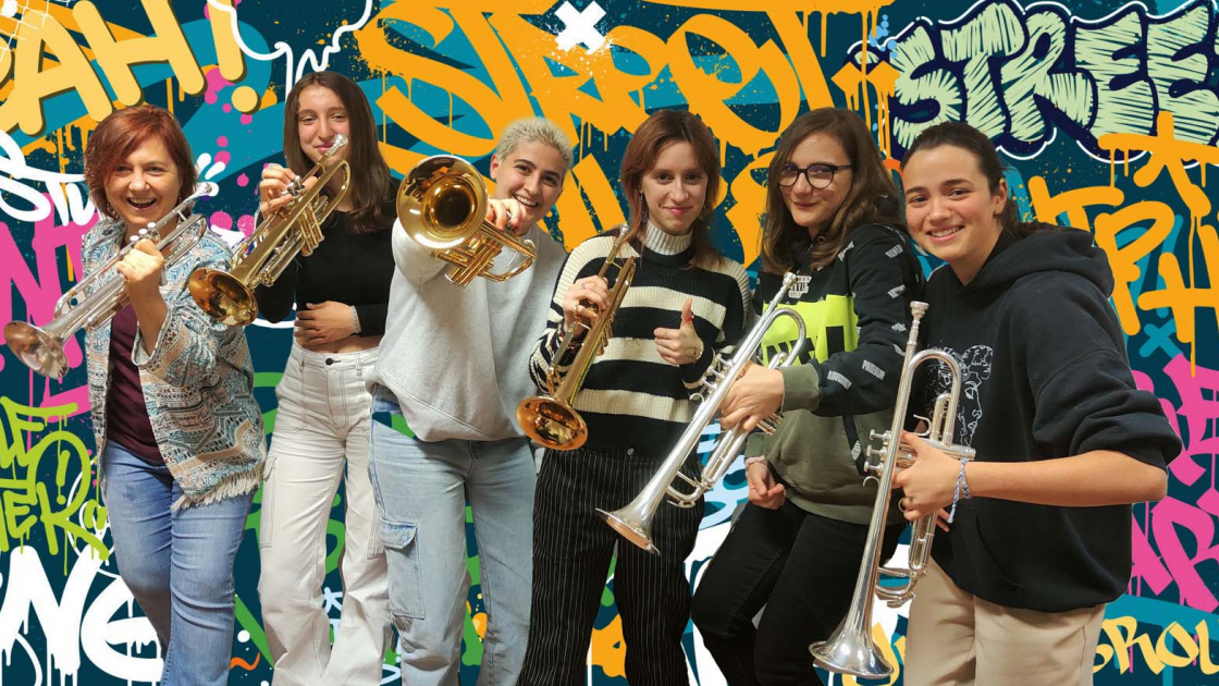 Sul palcoscenico, il quintetto di trombe tutto al femminile dell’Istituto musicale padovano, coordinato dal docente Diego Cal, Le Trombettissime. La formazione, composta da Mariasole Ramazzina, Sofia Ferrara, Agnese Alfredi, Viviana Lorigiola e Anna Varotto, si esibisce in una scaletta che spazia dai classici ai contemporanei, con brani originali di Eric Ewazen e trascrizioni di celebri temi di colonne sonore.
