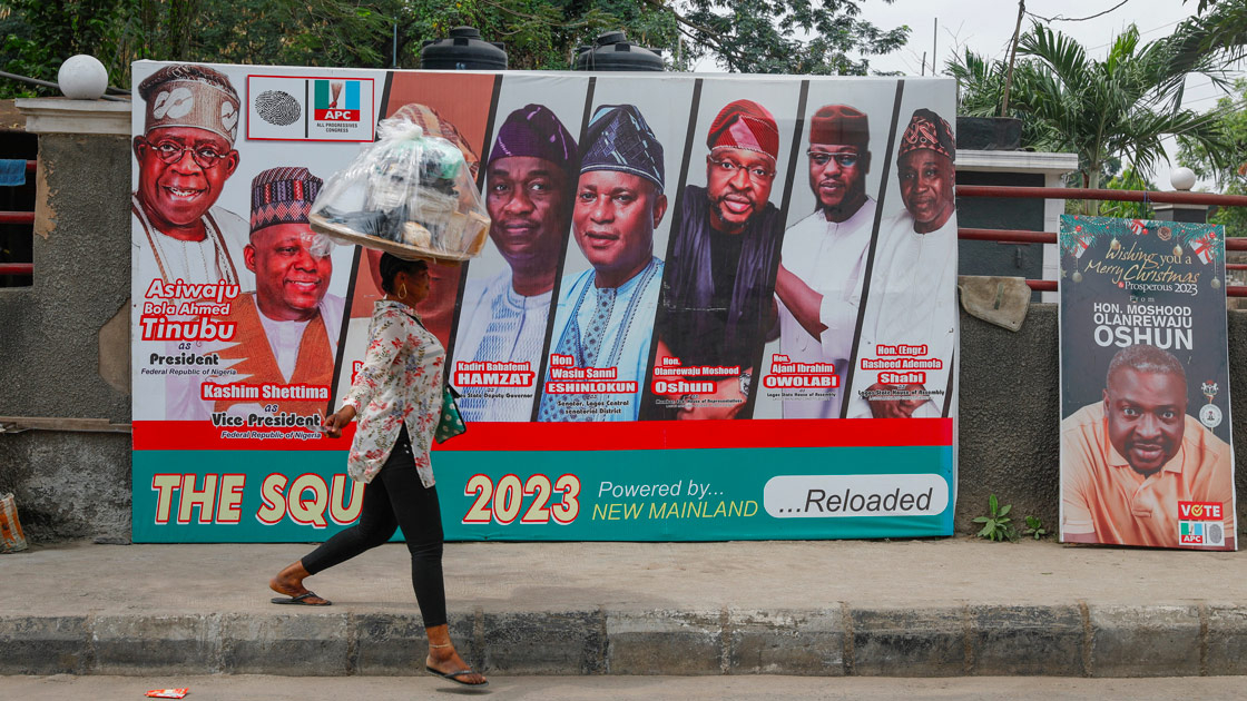 Cartelloni elettorali lunghe le strade, in Nigeria. Foto: Reuters