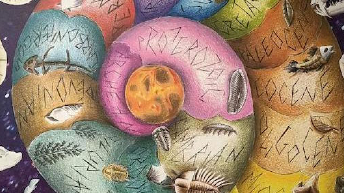 L’elaborazione grafica ha coinvolto studentesse e studenti del Liceo Artistico "Amedeo Modigliani" di Padova che con abilità e precisione scientifica hanno disegnato la successione delle ere geologiche e i fossili relativi, e hanno aggiunto impatto al quesito sul nostro futuro con la posizione in verticale del nautilus a descrivere un punto interrogativo. Il disegno è stato applicato sulle pareti di ingresso della Biblioteca di Geoscienze attraverso un’innovativa tecnica di affresco digitale.