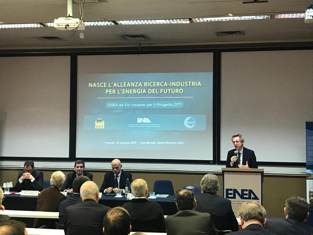 Il grande polo scientifico-tecnologico sulla fusione DTT (Divertor Tokamak Test) sembra essere realtà. Nella mattinata di mercoledì 29 gennaio è stato presentato il progetto internazionale che verrà realizzato nel Centro Ricerche ENEA di Frascati (Roma) dalla società DTT Scarl, di cui Eni avrà il 25%, ENEA il 74% e il Consorzio CREATE l'1%.