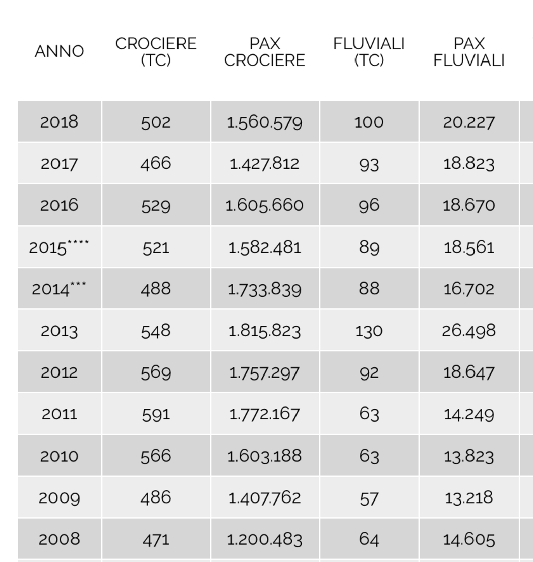 Quanti passeggeri arrivano con le grandi navi a Venezia
