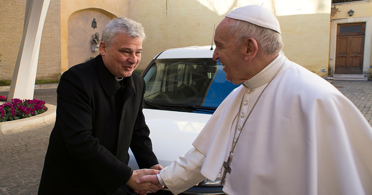 Il cardinale Konrad Krajewski assieme a papa Francesco. Foto: Reuters