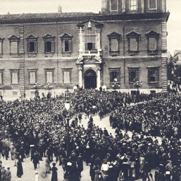 Il raduno delle camicie nere al Quirinale dopo la marcia su Roma. Foto di Archivio GBB / CONTRASTO