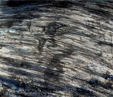 Lo fa in un paio di fogli neri di carbone che scava nella carta estraendone correnti aggrovigliate; mischia strumenti e tecniche nelle altre tredici grandi carte che assorbono la grafite e si coprono di polveri brune impastate d’acrilici, con un blu reso trasparente da abbondante trementina. E segni fitti e involuti, che sciolgono le figure umane, tramutandole in ombre; presenze appena illuminate da pennellate di schiuma bianca, da gocce di colore simili a piccole luci chiare che escono dal nero, dal marrone, dai toni scuri e cupi di un fluido inospitale. Sono i colori ai quali Minotto rimane fedele, una cifra che ritorna nella sua produzione, in questi fogli liberata dalle imposizioni del mercato e dei galleristi “Sono stati mesi in cui ho ritrovato una gioia nuova nel lavorare, finalmente libero di sperimentare. Ho potuto trovare nuovi moduli espressivi e recuperare il gusto del segno, creare qualcosa di nuovo” confida l’artista. Nascono così corpi che si ergono centrali e padroni in un paio di opere, per poi mischiarsi negli altri fogli con l’acqua e trascinare nei flutti la propria ombra, diventando ombra essi stessi, e trasformandosi in liquida impressione. In una stanza di carte, disegni, ombre e colori, l’inquieta ricerca di Minotto mostra i suoi nuovi esiti. Del tutto all’altezza della qualità mostrata fino ad oggi.