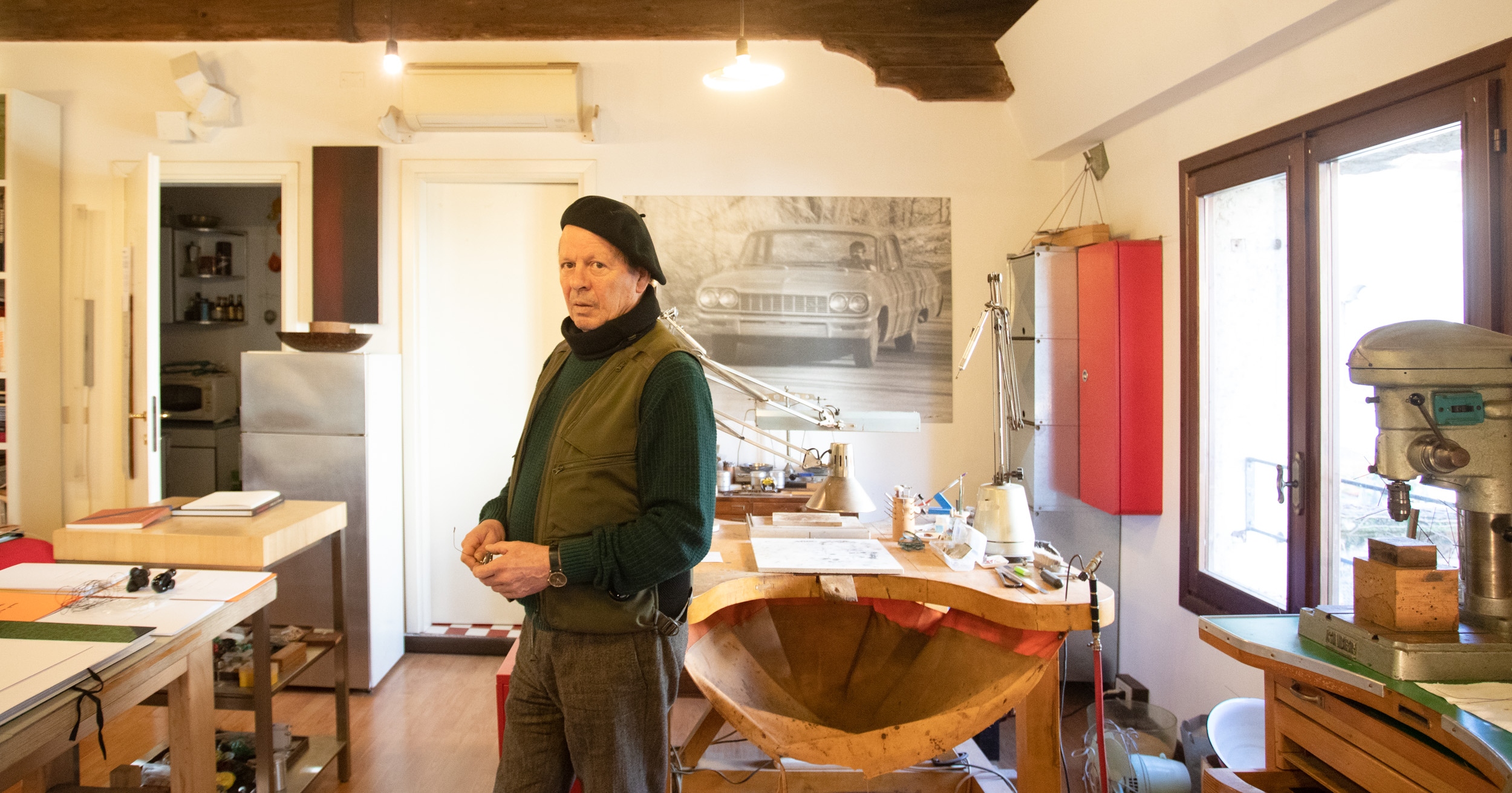 "Vengo in studio tutti i giorni, qui penso ai progetti, faccio i disegni e realizzo qualcosa di oreficeria con i metalli; per il vetro invece devo spostarmi a Murano. Sono circondato dai miei lavori e a volte neanche li considero più, perché penso sempre a cose nuove. Quella che vedete io la considero una piccola esposizione”.