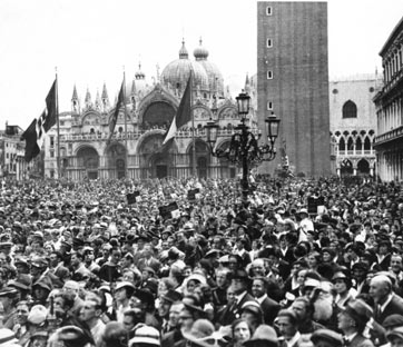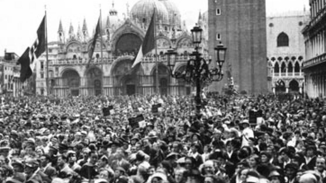 Venezia il 15 giugno del 1934: l'adunata in piazza San Marco per il discorso di Mussolini. Foto: Archivio GBB / CONTRASTO