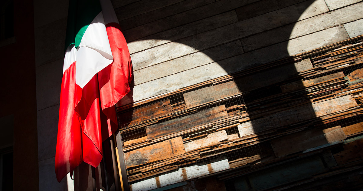 Rappresentazione appena abbozzata e con meno retorica possibile dei valori ideali di un’Italia nuova accostata al patrimonio riconoscibile (tramite la struttura di legno che vagamente si riferisce alla Cattedra di Gallileo [sic]).