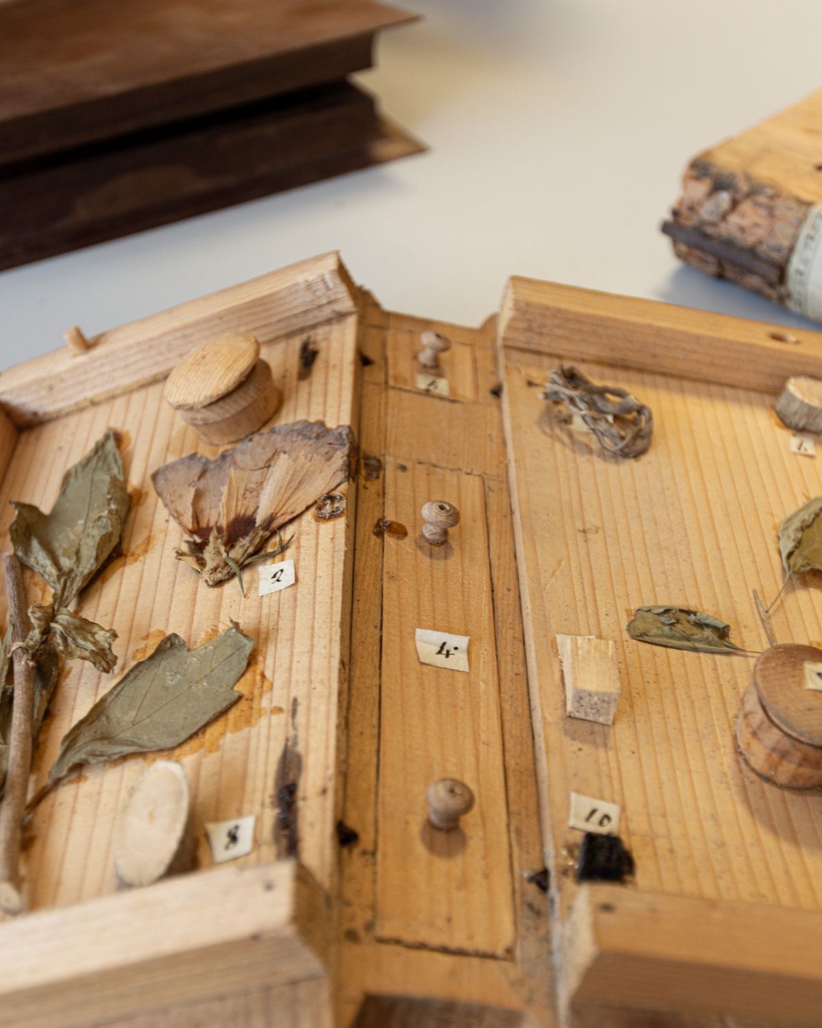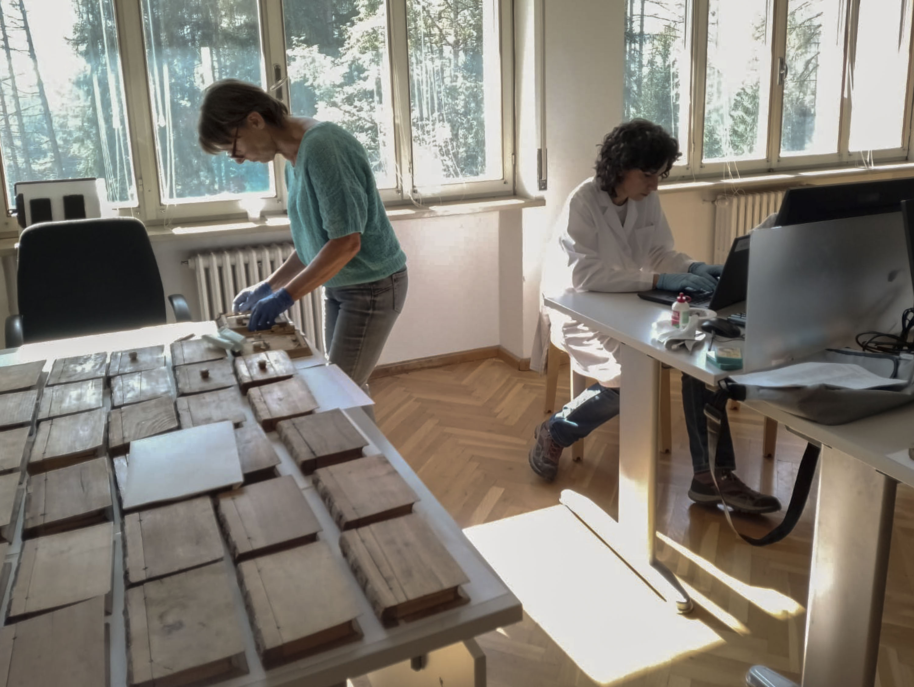 Conservazione dei libri in legno della xiloteca. Foto: Teresa De Toni / Dolomiti Contemporanee