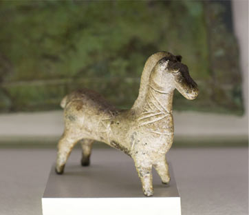 Quella descritta dall’iconografia veneta è una realtà indissolubilmente legata al sacro, nel quale il santuario è tutt’uno con la natura; luogo di preghiera, d’invocazione di un pantheon di divinità, ma anche luogo di commercio e scambio, sede delle scuole di scrittura frequentate da donne e uomini. In questo spazio, gli uomini donavano se stessi, o i loro simulacri: bronzetti raffiguranti donne, bambini, guerrieri, artigiani, ma anche cavalli, dotati di un ruolo di primo piano nella cultura paleoveneta. Famosi per l’abilità nella corsa, a essi venivano riservati spazi di sepoltura privilegiati, talora affiancati a quelli delle famiglie più importanti. Così accade nel grande tumulo funerario padovano del VI secolo a.C: in una tomba, un cavallo coricato sul fianco accoglie nel proprio ventre lo scheletro di un giovane uomo rannicchiato, forse vittima di un sacrificio rituale. Uomo e cavallo, accomunati e resi pari, abitano una città dei morti che, illuminata dalle pire funebri, si stacca dalla città: poderosi cippi lapidei indicano il confine fra necropoli e centro abitato. Spazi diversi e non invertibili sono assegnati alle case di terra e pietra, ai laboratori e ai campi, rispetto alle zone in cui raggruppamenti di tombe formano tumuli recintati. In essi sono deposti fratelli e sorelle, coppie, genitori e figli, assieme ai propri ornamenti, insegne di rango che descrivevano la loro vita passata e insieme raccontavano il mondo che li circondava.