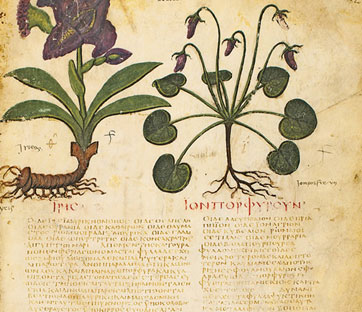 A pensarci tuttavia fu chi, nei secoli seguenti, riprese in mano l’opera e la trascrisse, o forse sarebbe meglio dire la “reinterpretò”. Come nel caso dei due codici illustrati più antichi, conservati a Vienna (Codex Aniciae Julianae o Codice di Vienna) e a Napoli. Si tratta, nell’ambito della tradizione manoscritta dioscoridea, di erbari concepiti diversamente dall’originale, in cui viene estrapolata solamente la materia botanica e riorganizzata in ordine alfabetico. Le illustrazioni impreziosiscono il libro, lo rendono un oggetto da “biblioteca importante” e vengono in aiuto di chi non possiede quel sapere tecnico cui il libro fa riferimento. E aprono la strada alla diffusione dell’opera di Dioscoride tra un pubblico colto anche se di non addetti ai lavori. “Un erbario illustrato – sottolineano Caputo e il suo gruppo – era ben degno di una principessa… Di certo non avrebbe sfigurato nella biblioteca di un patrizio o di un intellettuale dell’esarcato di Ravenna o di altra zona bizantina d’Italia, per il quale di recente si è supposto sia stato miniato e scritto, tra la fine del VI e l’inizio del VII secolo, il … Napoletano”.