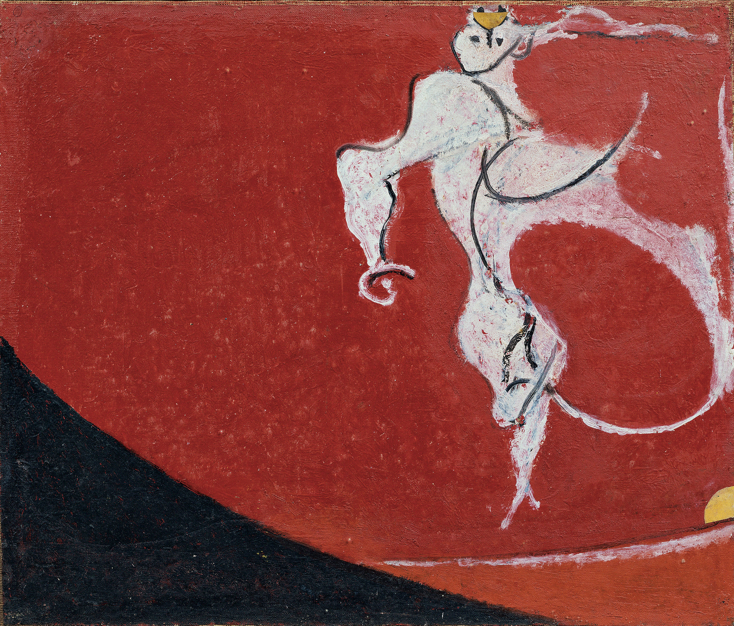 In occasione della visita alla Biennale di Venezia durante il 1934, nel libro delle firme di un ristorante di Burano, l’allora quarantenne Licini si autodefinisce errante, erotico, eretico, tre significativi aggettivi che lo hanno accompagnato per tutta la sperimentazione sociale e artistica della vita. Divennero il titolo di un libro Feltrinelli nel 1974; da decenni risulta esaurito, fuori catalogo e non acquistabile; è forse rintracciabile in rare biblioteche; raccoglieva gli scritti letterari e le lettere del pittore. Sarebbe proprio il caso di rieditarlo. Magari andate alla mostra e poi vi convincete a promuovere un appello in tal senso. Dopo averlo incontrato, è difficile dimenticare Licini. Dovrete e dovremo parlarne ancora.