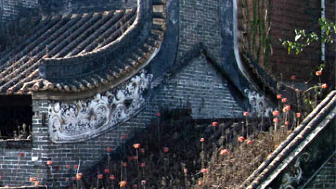 Quando visitiamo il villaggio abbandonato di Guanzhou nella piazza principale troviamo il segno dei botti del capodanno cinese, la carta rossa dei petardi è dappertutto. Ci sono cani da guardia e il pesce di stagno lasciato ad asciugare al sole, appeso tra i panni. Vicino al laghetto che chiude uno dei lati della piazza troviamo i recinti con le oche; i polli vanno da tutte le parti e non temono la nostra presenza, le radici aeree del caucciù disegnano dei tendaggi sull'acqua.