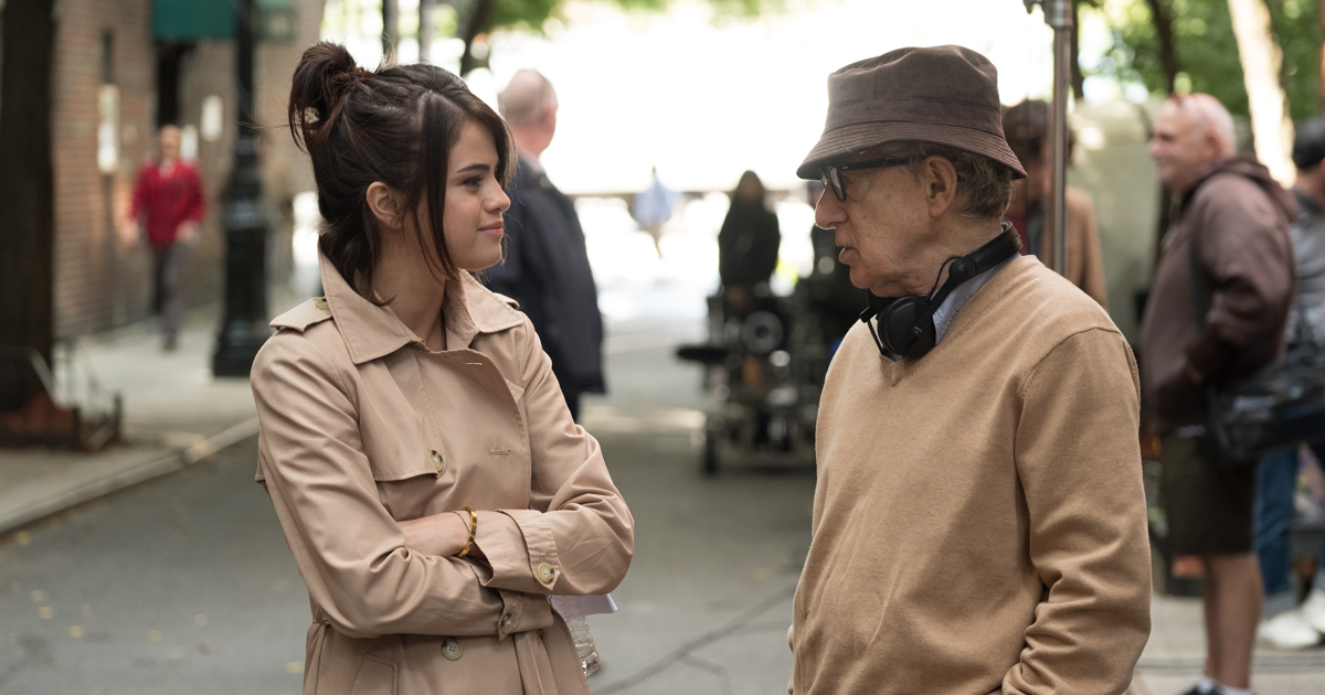 Woody Allen e Selena Gomez durante le riprese di "Un giorno di pioggia a New York"