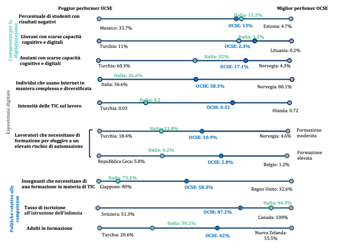Un report Ocse infatti ha misurato l’Italia su tre principali dimensioni: competenze per la digitalizzazione, esposizione digitale e le politiche relative alle competenze. Il risultato? Siamo stati inseriti nel “gruppo con il ritardo digitale più consistente”.