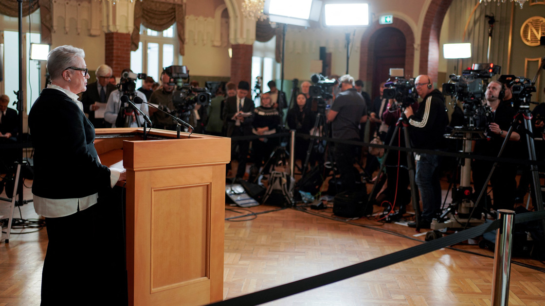 L'annuncio del premio Nobel per la Pace 2022. Foto: Reuters