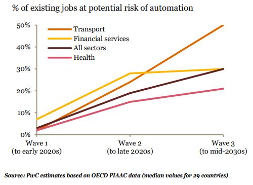 Secondo McKinsey, quasi metà delle attività di cui si compongono i lavori odierni, a livello mondiale, sono potenzialmente automatizzabili. Meno del 5 per cento delle professioni sono totalmente automatizzabili, circa il 60 per cento sono composte almeno per il 30 per cento di attività automatizzabili. Le attività tecnologicamente automatizzabili riguardano 1,2 miliardi di lavoratori a livello mondiale e stipendi per 14,6 milioni di miliardi di dollari. Di questi Cina, India, Giappone e Stati Uniti costituiscono oltre metà.