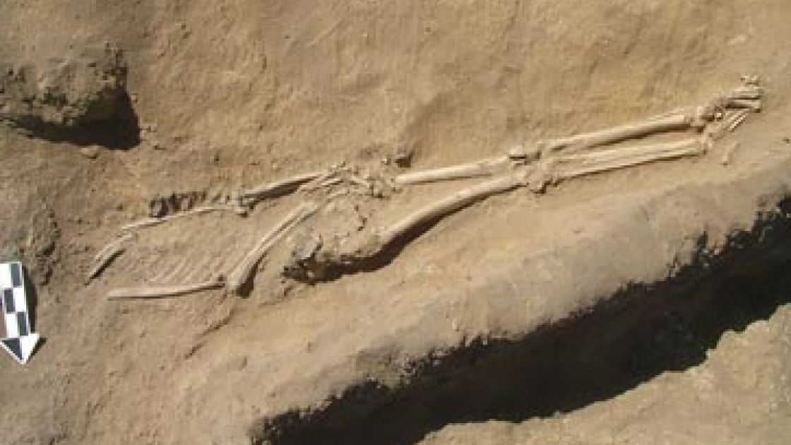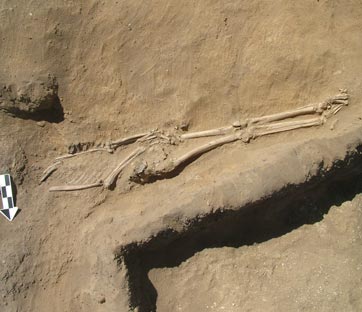 La sepoltura in cui sono stati ritrovati i resti umani e il calcolo prostatico