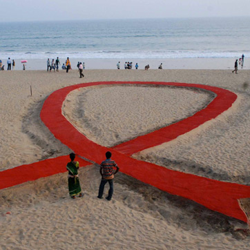 Il simbolo della lotta contro l'Aids. Foto di Xinhua/eyevine/contrasto
