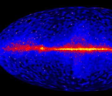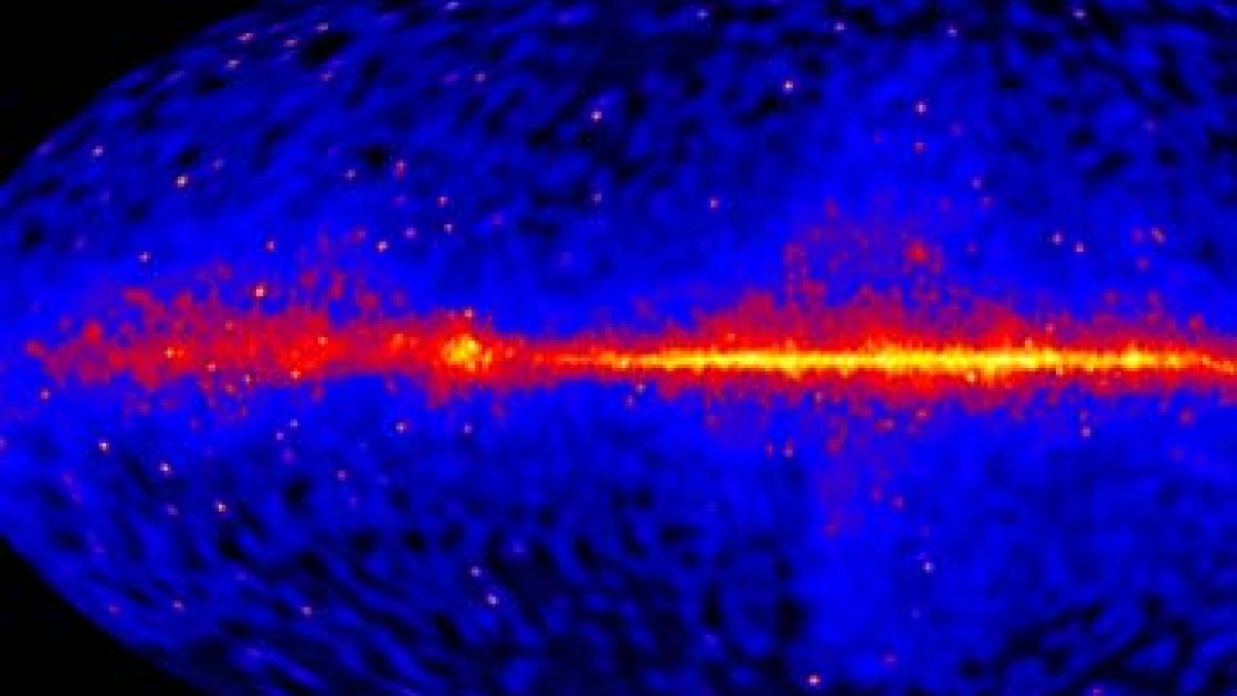 La mappa del cielo gamma ricostruita in base a 4 anni di radiazioni gamma rilevate da Fermi. Al centro la galassia della Via Lattea / NASA/DOE/Fermi LAT Collaboration