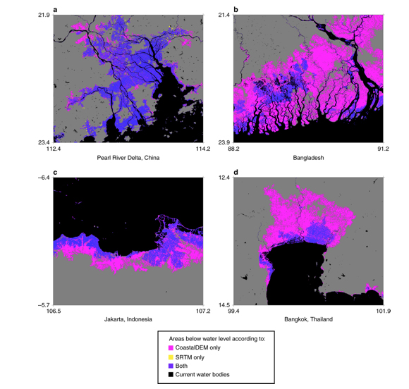Lo studio rivede le stime grazie a un nuovo sistema di calcolo che ha permesso, attraverso i dati satellitari, di prevedere come le previsioni attuali siano fin troppo ottimistiche, se basate sul modello standard finora adottato. E i risultati non sono incoraggianti: da qui al 2050 circa 150 milioni di persone che ora vivono su terre emerse potrebbero trovarsi al di sotto del livello marino durante i periodi di alta marea.