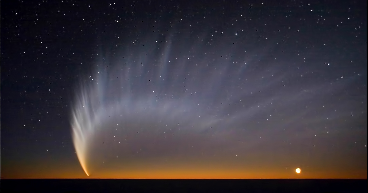 La grande coda della cometa McNaught sopra l’oceano Pacifico vista dall’Osservatorio Europeo del Paranal (Cile) nel gennaio 2007. (Crediti: S. Deiries/ESO)