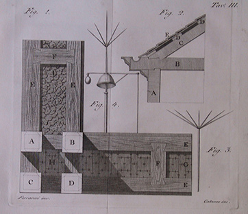 Un disegno del sistema di intelaiatura in legno delle pareti realizzate dai Borboni
