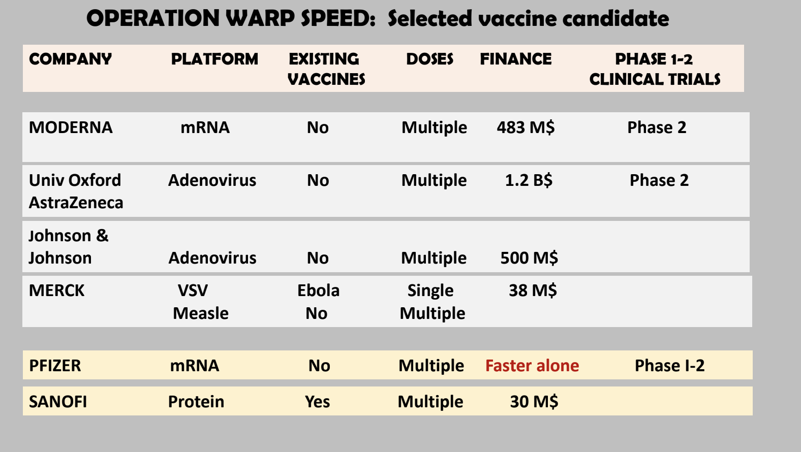 In ogni caso sia in Europa che negli Stati Uniti, spesso in collaborazione, ci sono poi anche molte ditte multinazionali che spesso cercano di sviluppare il loro vaccino indipendentemte dal Warp Speed e dalle strategie cinesi in maniera tradizionale e molto rapida. Quindi avremo questa competizione e questa difficoltà nel valutare quale sarà il migliore. Solo tra due o tre anni si saprà davvero quale vaccino è meno associato ad effetti collaterali e protegge meglio".