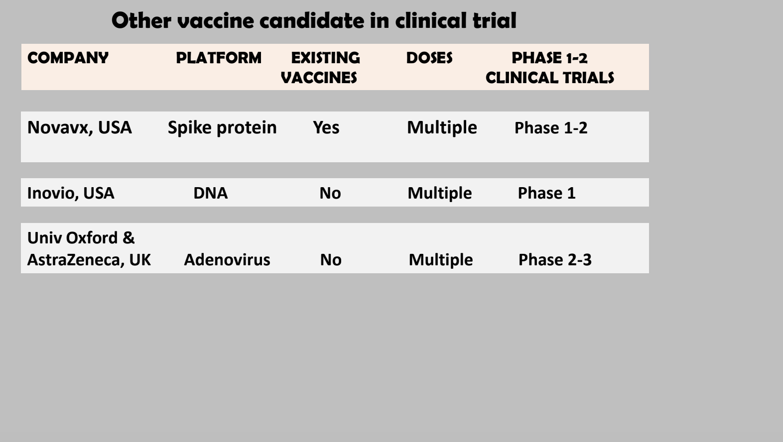Abbiamo questo grandissimo panorama di vaccini diversi perché dobbiamo affrontare una malattia che conosciamo ancora molto male e non sappiamo quale di questi vaccini in competizione sarà quello più efficace".