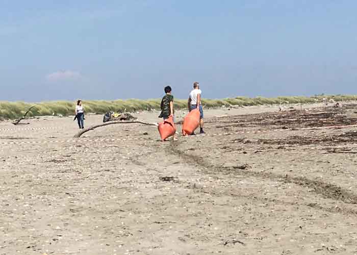 Quest’anno è stata introdotta un’attività di monitoraggio del beach litter, ovvero un’indagine sui rifiuti presenti sulla spiaggia della riserva naturale di Ca’ Roman, svolta secondo i protocolli di Legambiente. I dati raccolti in una porzione di litorale lunga 100 e profonda 50 metri evidenziano una situazione di degrado comune a molte spiagge italiane. Nel tratto esaminato sono stati raccolti circa 150 kg di rifiuti che sono poi stati suddivisi in base alla loro tipologia. Il 94% del materiale campionato risulta essere in plastica, seguono i rifiuti in gomma e di materiale tessile. Tra i rifiuti in plastica sono state ritrovate più di 1.000 reti per l’allevamento dei mitili e numerosi frammenti di bottiglie e imballaggi, frutto dell’inizio del loro processo di degradazione. L’elenco dei problemi causati dall’abbandono dei rifiuti in mare e sulla costa riempie pagine di letteratura scientifica che gli studenti di biologia marina conoscono bene.