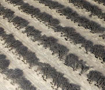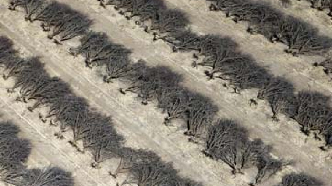 Filari di mandorli morti durante una delle ultime siccità in California. Foto: Reuters/Lucy Nicholson