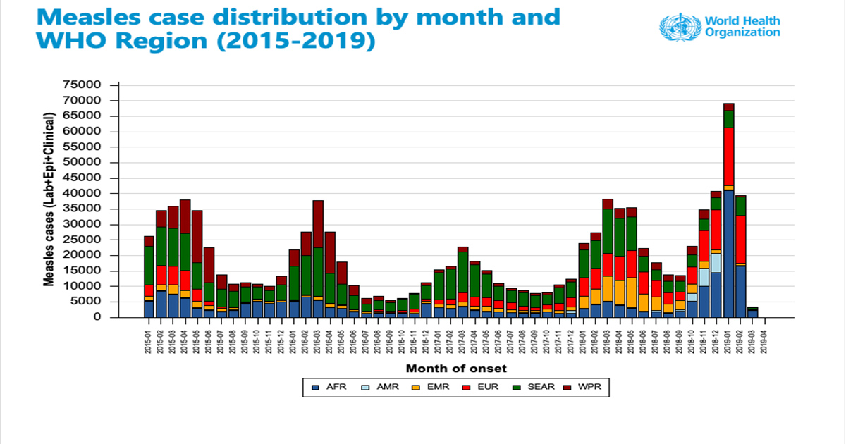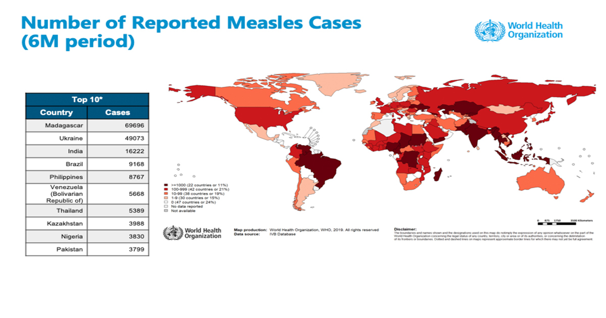 L’Oms è chiara: “Seppure i dati non siano ancora completi – si precisa nel rapporto – indicano un chiaro trend: molti Paesi sono nel pieno di una consistente epidemia di morbillo e tutte le aree del mondo stanno sperimentando un aumento dei casi”. Secondo l’Oms, le epidemie attuali interessano la Repubblica democratica del Congo, l’Etiopia, la Georgia, il Kazakistan, il Madagascar, il Myanmar, le Filippine, il Sudan, la Thailandia e l’Ucraina, causando numerosi decessi, la maggior parte tra i bambini.