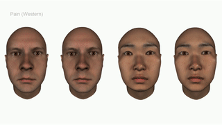 Da sinistra a destra: espressione di dolore (ovest), piacere (ovest), dolore (est), piacere (est). Le espressioni di piacere differiscono tra est e ovest. Chen et al. 2018, Pnas