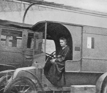 Marie Curie e una delle ambulanze attrezzate con gli strumenti a raggi X