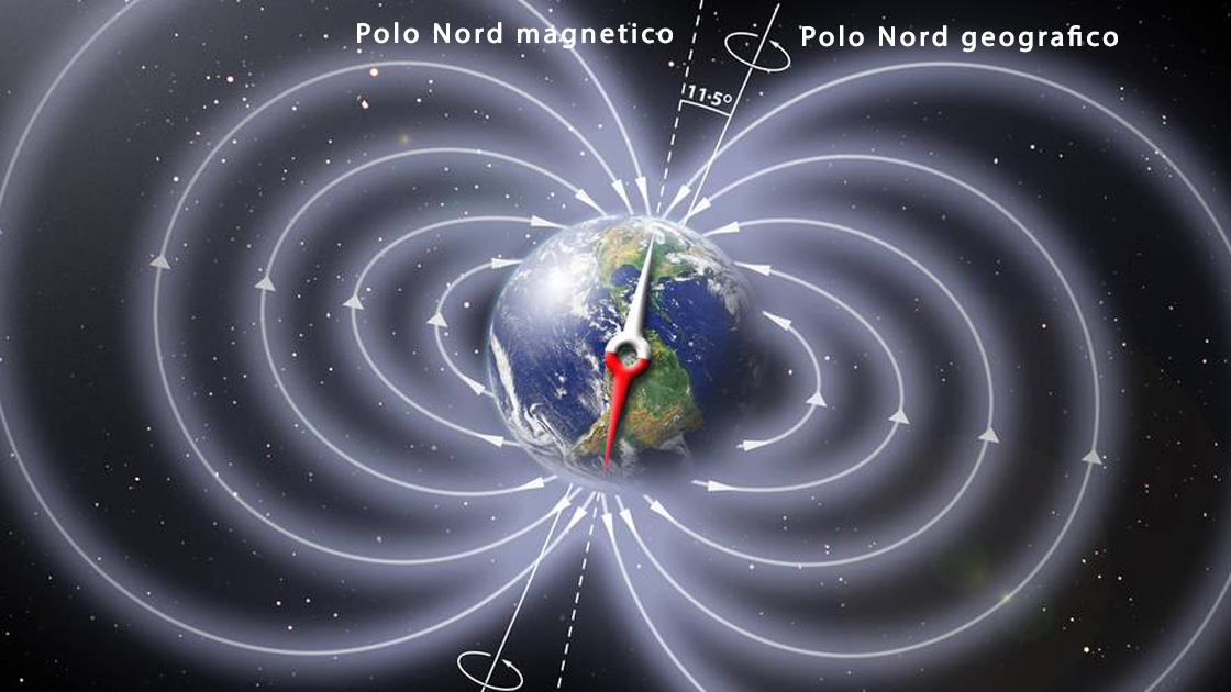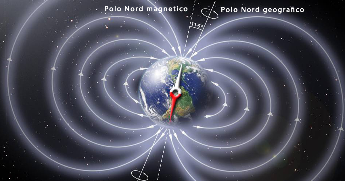 Il campo geomagnetico terrestre è dovuto al movimento del nucleo liquido più esterno che agisce come una dinamo. Nonostante sia stabile in superficie, e alquanto attendibile per la navigazione, il campo geomagnetico varia nel tempo. Al momento, il polo Nord magnetico si sta spostando verso la Siberia mentre l’intensità del campo si è indebolita costantemente di circa il 5 percento ogni cento anni da quando i ricercatori hanno iniziato a raccogliere i dati.