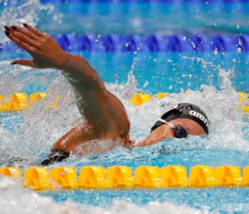 Federica Pellegrini durante la gara che le ha valso l'oro al Mondiale di Budapest. Foto: Reuters/Bernadett Szabo