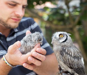 “Sono molto affettuosi, non tutti lo sanno”. E, parlando, gli accarezza la testa come si fa con un gattino. Luca Schiesari è un giovane biologo padovano e il suo progetto porta il nome di quel piccolo assiolo faccia bianca che cerca coccole e che, da poco più di un mese, vive con lui: Altai. Classe 1984, Luca è tornato in Italia dopo un lungo periodo di lavoro all’estero: una laurea con lode in Biologia evoluzionistica (curriculum Zoologia) all’università di Padova, un’esperienza come ricercatore post-doc all’università di Leicester nel Regno Unito e poi gli Stati Uniti per un incarico, da ricercatore in Genetica, al Developmental Biology Center di Minneapolis. Ispirato dall’esperienza americana e, in particolare, dal modello del Raptor center dell’università del Minnesota, e dai suoi efficaci programmi di tutela e divulgazione in grado di coinvolgere anche la popolazione, decide di rientrare in Italia per dar vita a un progetto che si pone l’obiettivo di sensibilizzare i giovani alla conservazione delle specie in via d’estinzione, frequentando dapprima alcuni corsi di formazione dell’associazione Alantica (che si occupa di falconeria in una chiave nuova ed evoluta: “non più volta alla predazione venatoria, ma intesa come volo libero sportivo in uno scambio di emozioni ed esperienze”). Oggi Luca è falconiere specializzato in rapaci notturni.