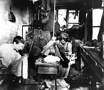 Condizioni di lavoro in un laboratorio tessile a New York ai primi del Novecento. Foto: Kheel Center