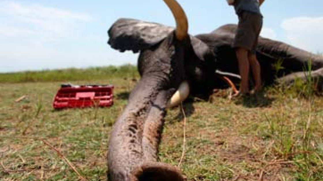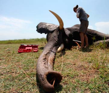 Un elefante viene addormentato per posizionare un rilevatore Gps: un aiuto contro il bracconaggio. Foto: Reuters/Hereward Holland