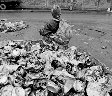 Duque de Caxias, discarica di Jardim Gramacho, la più grande di tutto il Brasile - Uno dei “ Catadores “ al termine del suo turno di lavoro, nella zona in cui vengono riciclate le lattine. Foto: Francesco Cocco/contrasto