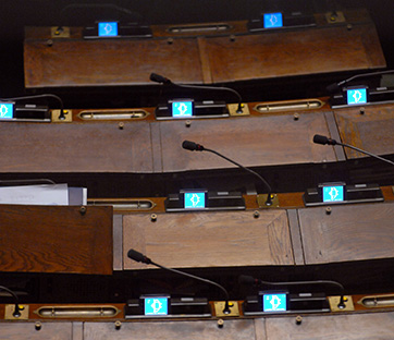 Gli scranni vuoti della Camera dei deputati. Foto: Augusto Casasoli/A3/Contrasto