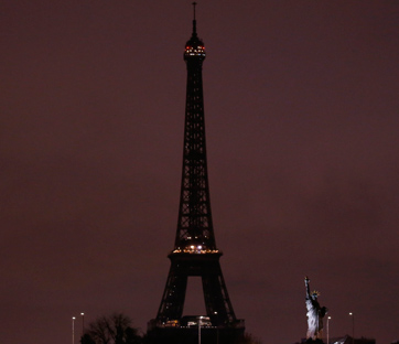 La torre Eiffel spenta dopo l'attentato del 13 novembre 2015. Foto: Jacky Naegelen