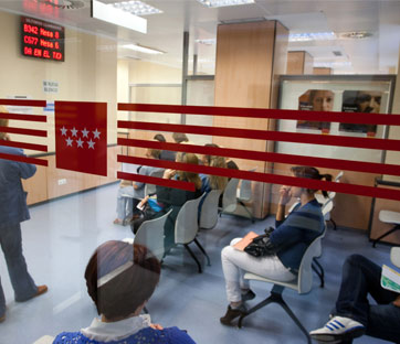 Madrid, un centro per l'impiego. Foto: Christian Jungeblodt/laif/contrasto