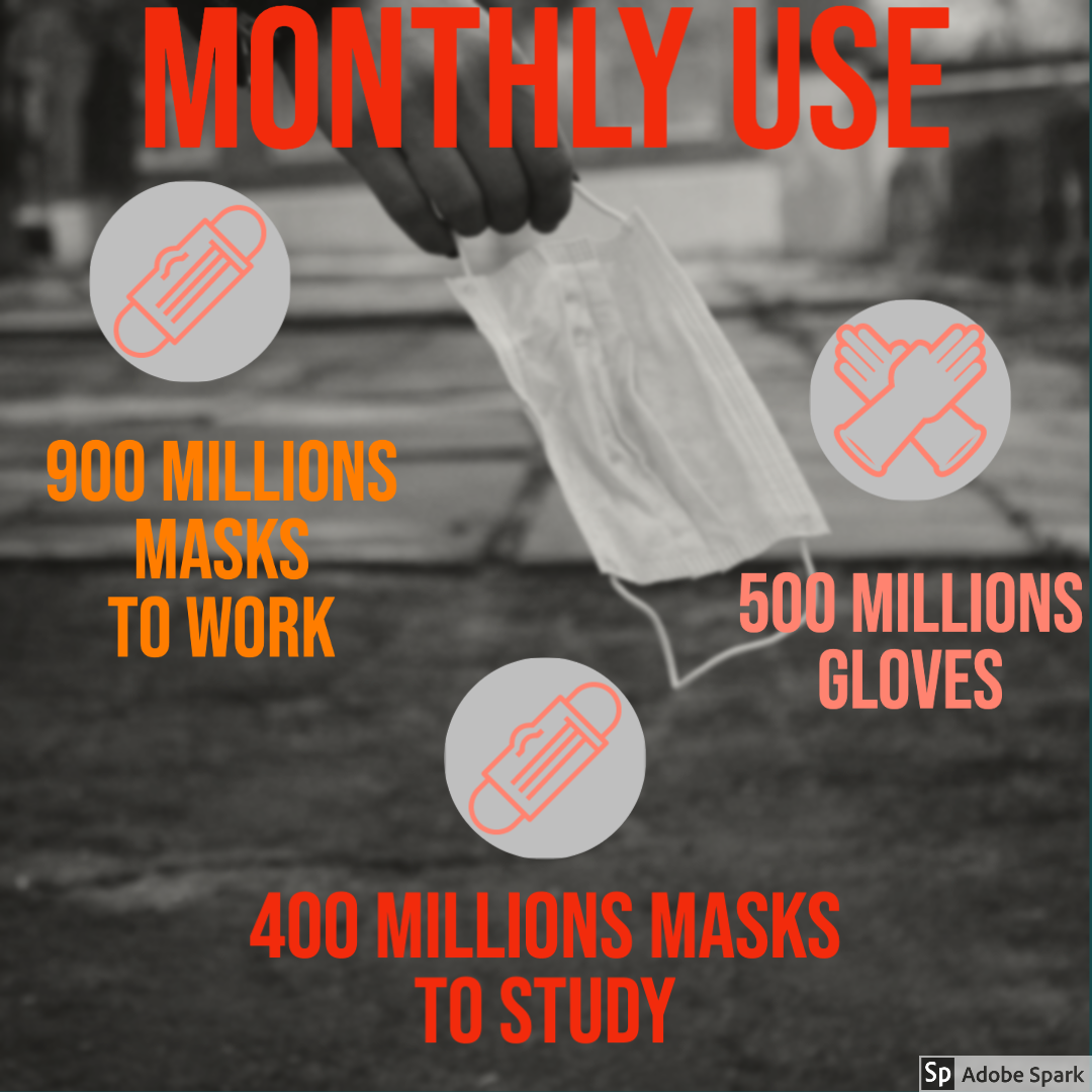 To these, we need to add the number of masks and other devices required to reopen the schools. The same Polytechnic of Turin (PoliTO) has published a Report with indications for the reopening of schools, where it is estimated that every student aged +6 years should wear 2-3 masks at school during one day. Considering the more than 8 million students who attend Italian schools every day, we can estimate well over 20 million masks used daily, for a total of 400 million per month. Not to mention the disposable lunch boxes with single-use plastic plates and cutlery instead of regular meals offered by school canteens.