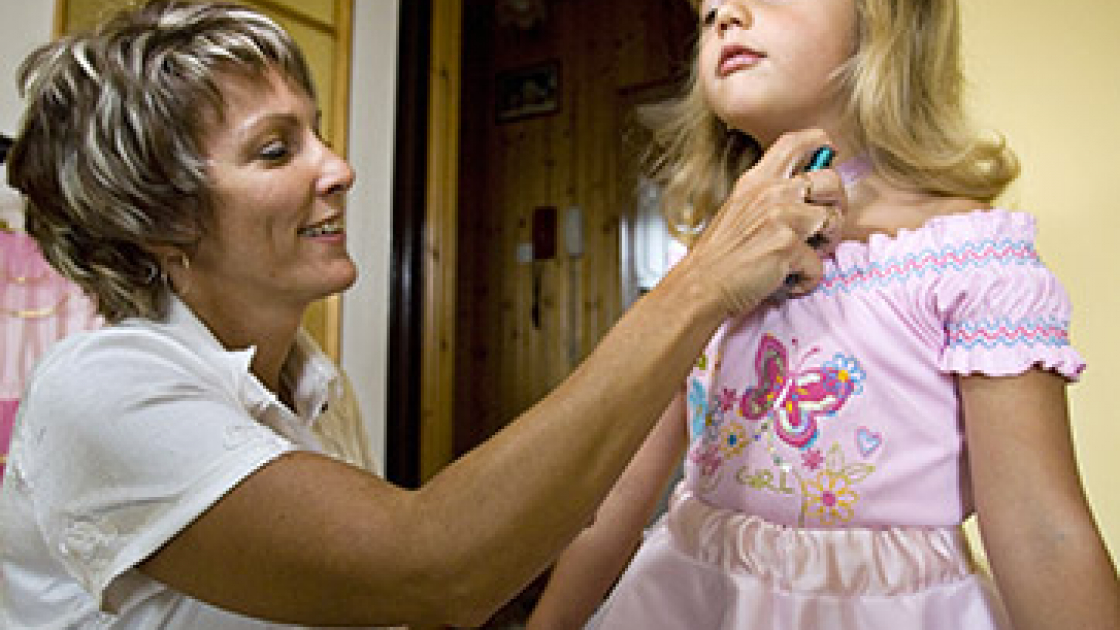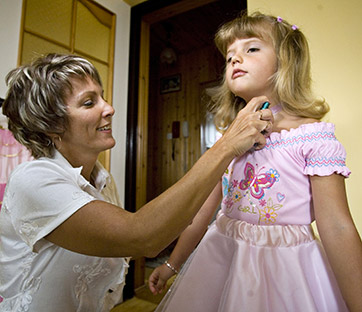 Una madre veste e trucca sua figlia prima della partecipazione a un concorso di bellezza in Polonia. Foto: Jan Brykczynski/Anzenberger/contrasto