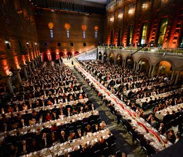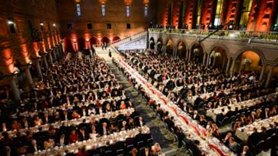 La cena di gala dopo la cerimonia di premiazione del premio Nobel a Stoccolma. Foto: Reuters/Fredrik Sandberg/TT News Agency