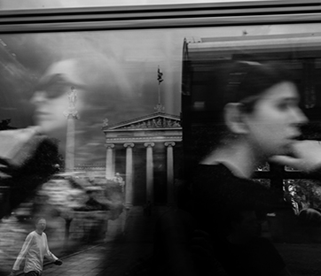Il riflesso di uno degli edifici storici dell'università di Atene in pieno centro città. Foto: Timothy Fadek/Redux/contrasto