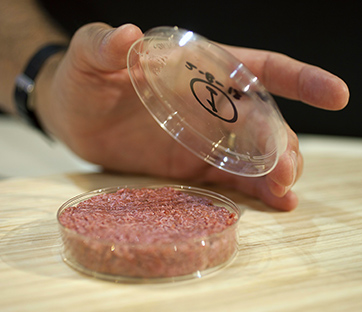 Nel 2011 il Sindacato Italiano Veterinari Medicina Pubblica cominciava a parlare di carne in provetta “Entro sei mesi il primo wurstel . All'inizio sarà pallido e molliccio. Ma miglioreremo colore e sapore”. La carne artificiale – derivata dalle staminali - potrebbe del resto dare un contributo per risolvere il problema della fame nel mondo e ridurre al contempo l’inquinamento atmosferico. A distanza di un paio di anni si concretizza l’hamburger in provetta. A caro prezzo per ora, visto che si parla di un costo di oltre 200.000 dollari, sebbene di un certo interesse per la questione ecologica. Per produrre carne bovina destinata ai Paesi industrializzati, oltre al dispendio di CO2, vi è un forte consumo di acqua: un solo hamburger “brucia” 2.400 litri di acqua, un chilogrammo di carne 15.500. Una nuova era per l'alimentazione? Forse. Il progetto coordinato da Mark Post, ricercatore dell'università di Maastricht, in Olanda, ha l’obiettivo di debellare la fame nel mondo. Da anni lo staff di Post sta lavorando in laboratorio per risolvere il crescente bisogno di carne che nel 2050, si stima, raddoppierà. Il progetto “polpetta sintetica” è appoggiato dalle associazioni ambientaliste e da quelle per la tutela degli animali proprio perché potrebbe evitare la macellazione di milioni di capi di bestiame. Gli allevamenti intensivi, presenti per la maggior parte in Sudamerica hanno un pesante impatto sull'ambiente. Il settore è responsabile del 37% delle emissioni di metano e del 65% di quelle di ossido di azoto e l'allevamento sarebbe responsabile del 18% delle emissioni globali di gas serra, una percentuale superiore a quella del settore dei trasporti, si legge in un rapporto del Parlamento Ue.