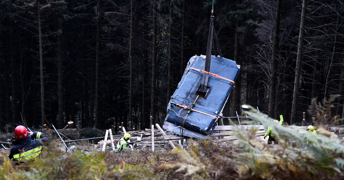 I soccorsi sul luogo di caduta della cabina della funivia del Mottarone. Foto: Reuters
