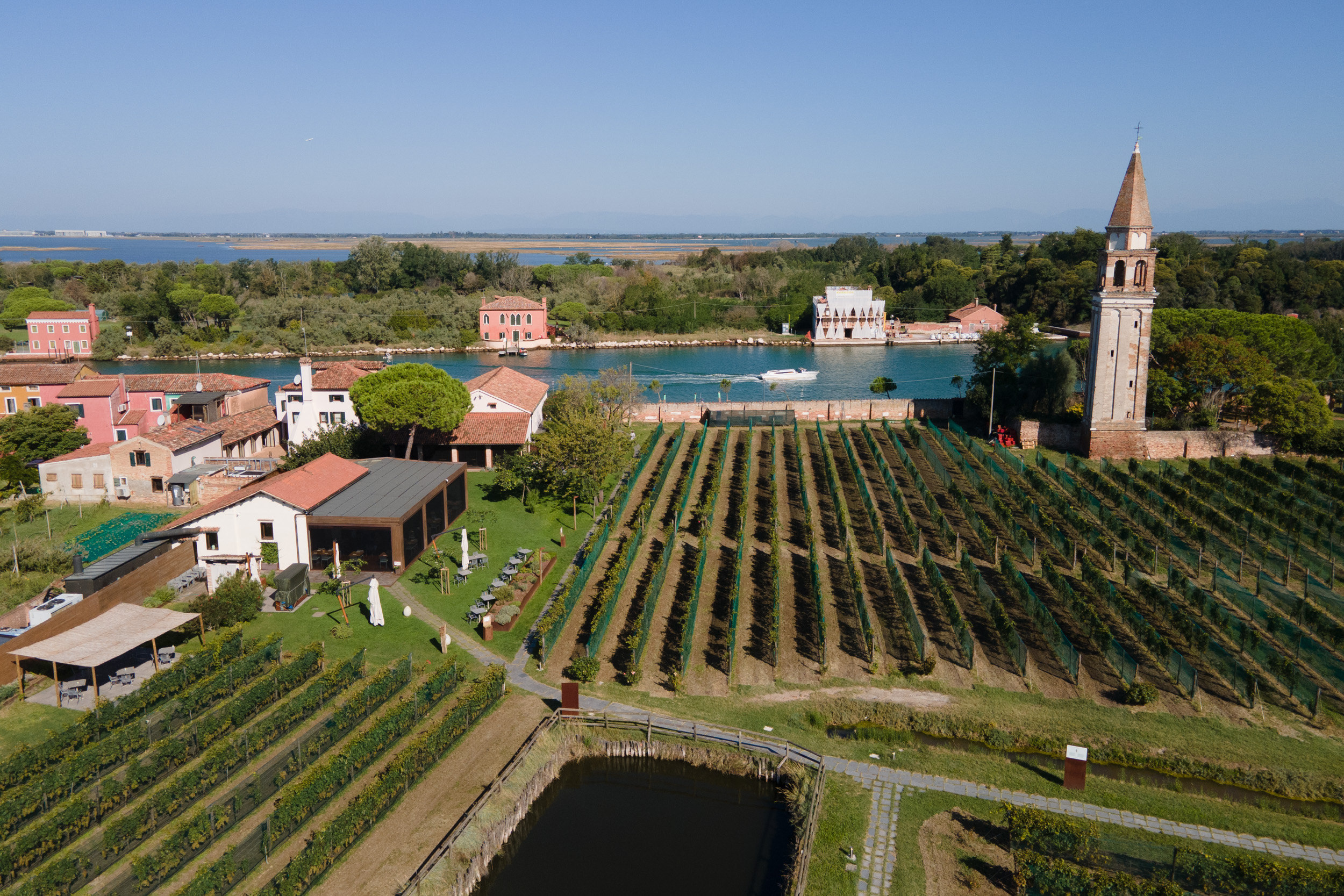 Mazzorbo. Il ristorante Venissa (a sinistra) visto dall'alto. Credit: Massimo Pistore